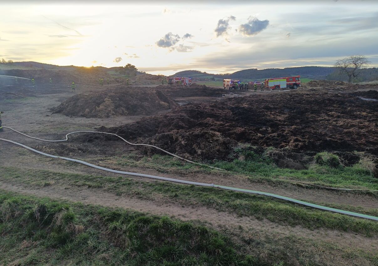 Požár hnojiště ve Zduchovicích po třetí.
